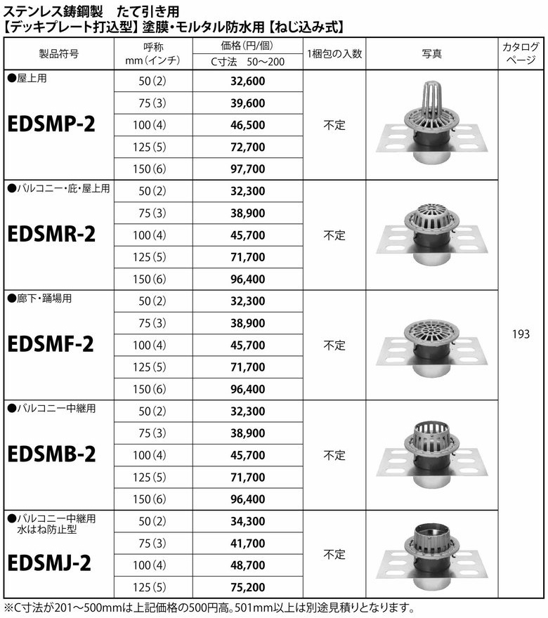 - デッキプレート用塗膜・モルタル防水 縦引き ねじ込 ステンレス鋳物製のルーフドレインの情報ページです。EDSMP-2、EDSMR-2、EDSMF-2、EDSMB-2、EDSMJ-2の製品情報、取扱説明、価格の案内です。